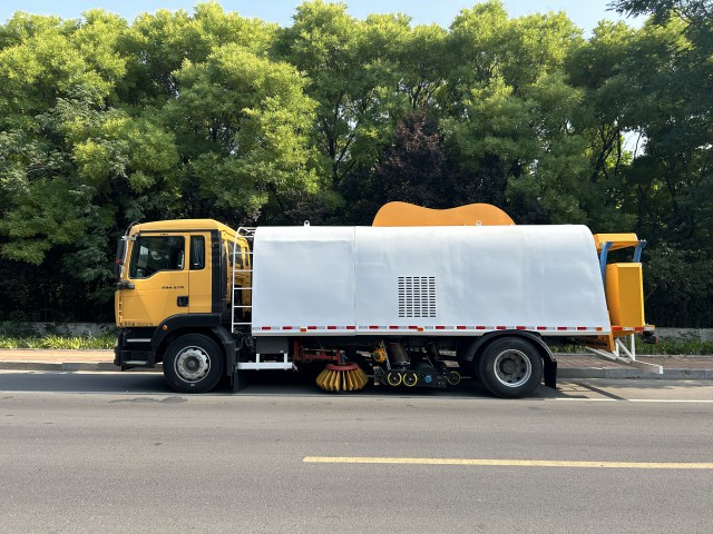 雙發(fā)高速清掃車,有效作業(yè)速度可達(dá) 60+Km/h,作業(yè)效率是現(xiàn)有清掃車 4 倍